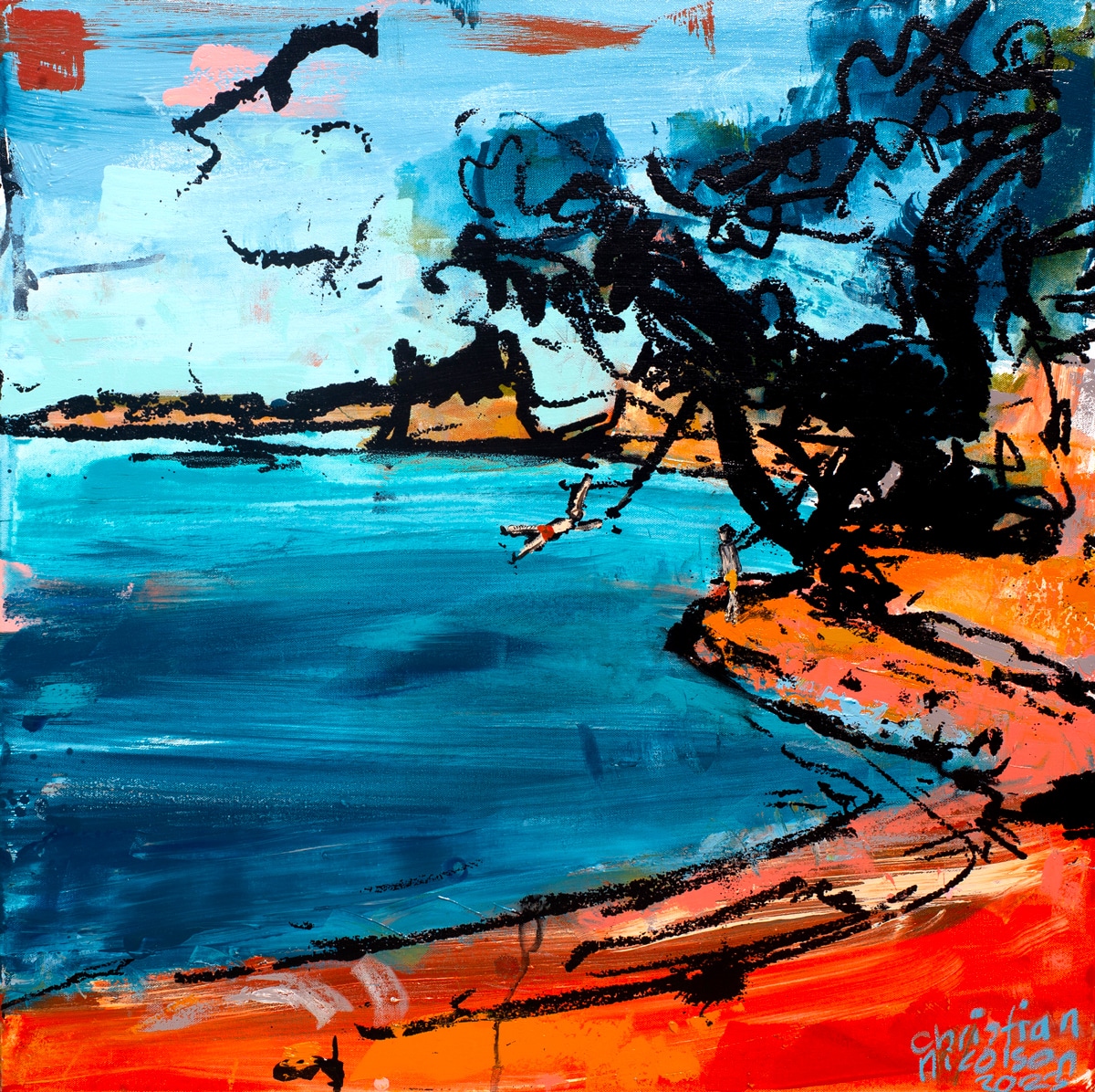 Medium: Acrylic and mixed media on canvas, framed